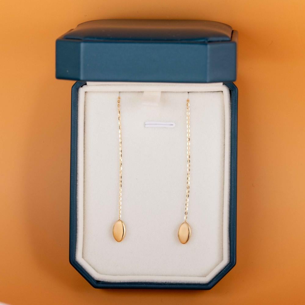 - حلق ذهب ناعم بتصميم متدلٍ عصري