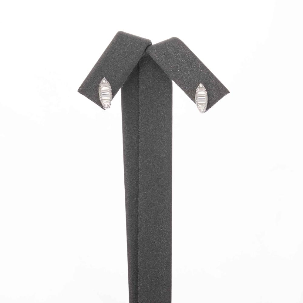 هو زوج من حلق ناعم مصاغ من ذهب أبيض عيار 18 قيراط، بموديل إيطالي فاخر ومرصع بأحجار الزركون الكريم بتصميم ألماس.