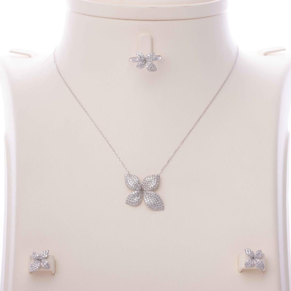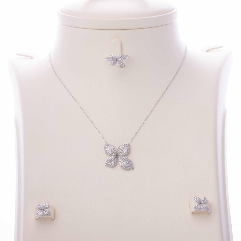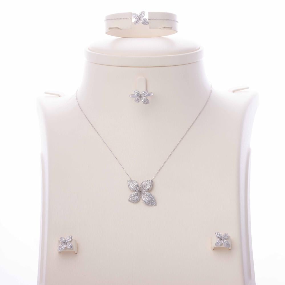 هو طقم ذهب يتكون من "انسيال وسلسال وخاتم وزوج حلق" مصنوعات من ذهب أبيض بموديل باسكال.
