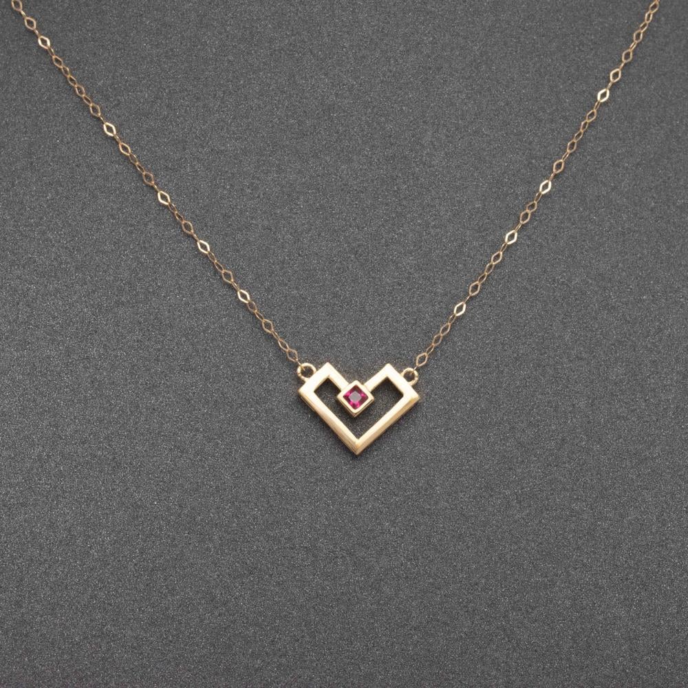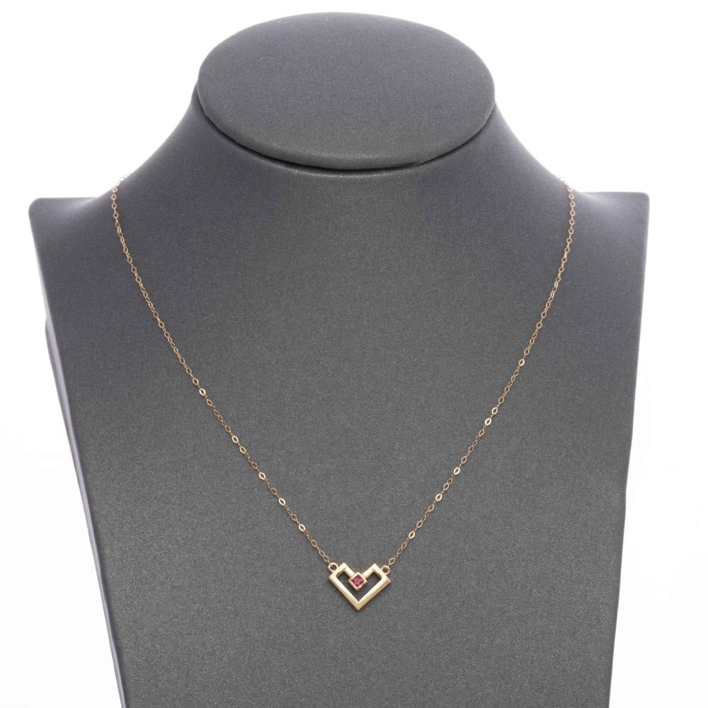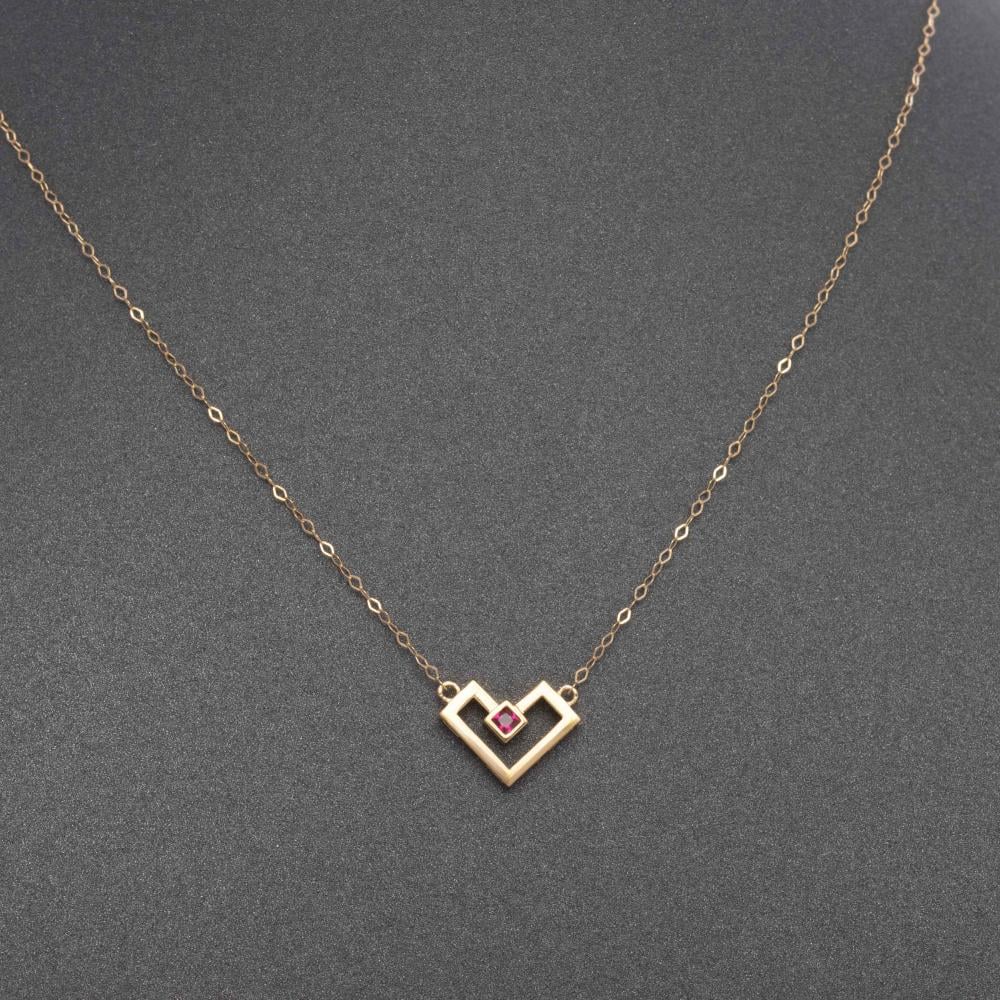 تألقي بارتداء هذه القطعة الذهبية الفريدة التي ملؤها الحب.. عقد ذهب ناعم تصميم قلب مرصع بحجر كريم لون أحمر.